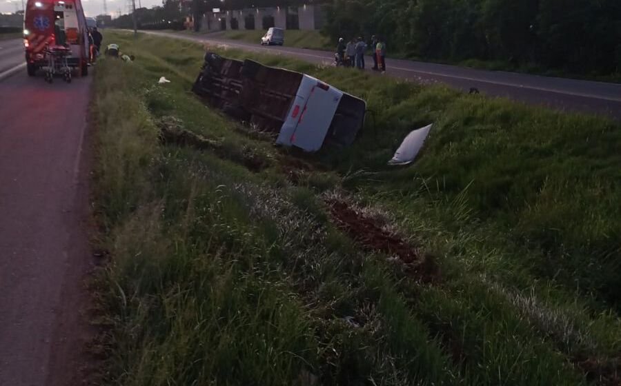Na manhã desta terça-feira (25), um ônibus que transportava funcionários de uma empresa de Tubarão para Capivari de Baixo sofreu um grave acidente de trânsito. De acordo com informações das autoridades locais, o veículo saiu de pista e tombou, deixando os 15 ocupantes do ônibus em estado de choque.
