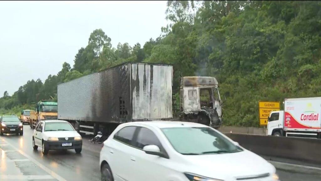 Devido ao derramamento de óleo na pista e às chamas, foi necessário interditar parcialmente o trecho para garantir a segurança dos motoristas e permitir o trabalho das equipes de emergência.