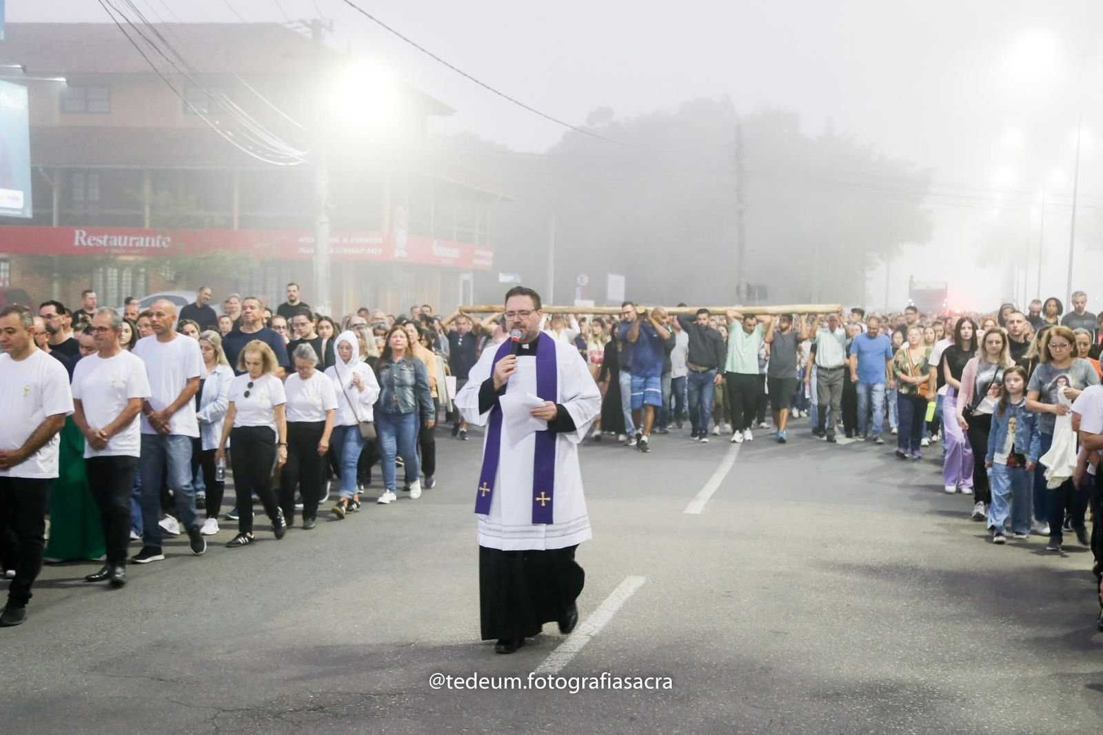 A programação começa às 6h da manhã, com saída da igreja e percurso por algumas ruas do bairro, reunindo fiéis em um momento de oração, reflexão e preparação espiritual para a Páscoa.