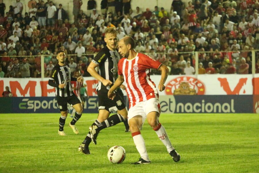 A primeira foi aos 27 minutos, quando Andrew cruzou da esquerda, e Bruno Paraíba cabeceou no canto direito do goleiro Fernando Castro, que fez uma linda defesa. Aos 33, em outra jogada pela esquerda com Andrew, Nicolas testou firme e a bola passou raspando a trave direita do Hercílio Luz. Mesmo com a pressão, a bola não entrou e o jogo ficou no empate em 0x0.