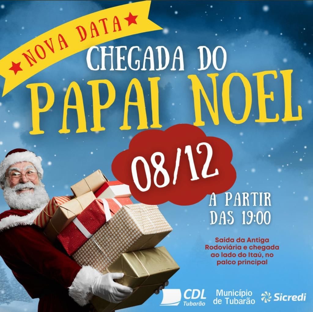 Após o adiamento em razão da chuva, ficou definido que a chegada do Papai Noel no Centro de Tubarão ocorrerá na sexta-feira (8). Os envolvidos na organização tomaram a decisão na tarde desta terça (5).