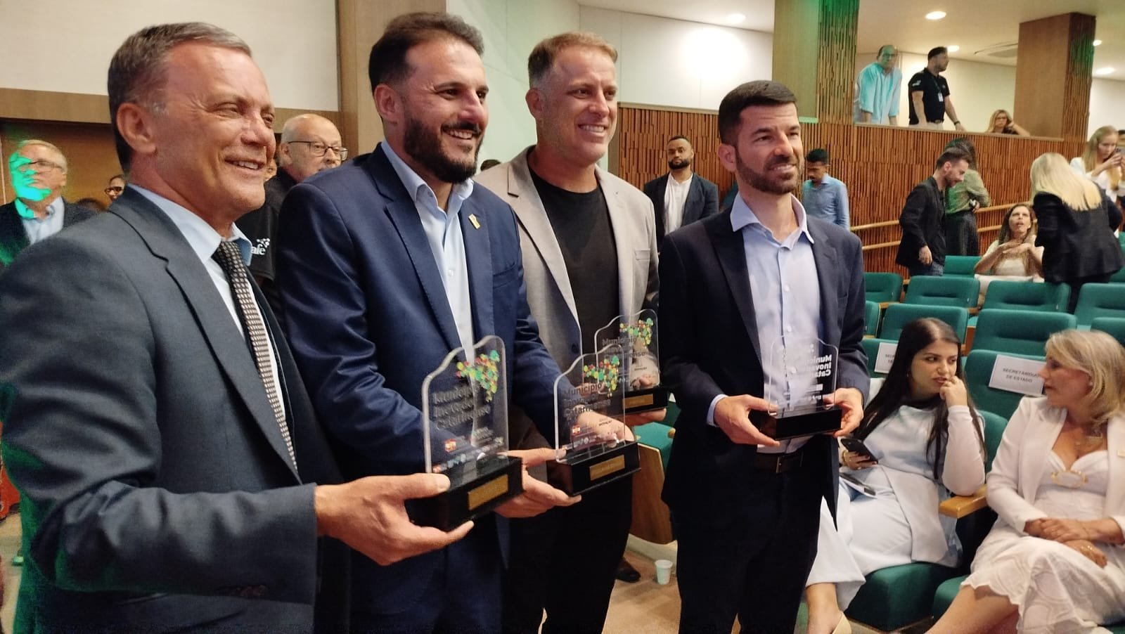 Gravatal, Capivari de Baixo e Pescaria Brava receberam, nesta quarta-feira (17), em Florianópolis, o Selo Município Inovador Catarinense, concedido pelo programa SC Mais Inovação. A certificação foi entregue em solenidade com a presença do governador Jorginho Mello e reconhece o cumprimento de 100% das diretrizes previstas no Marco Legal da Inovação.