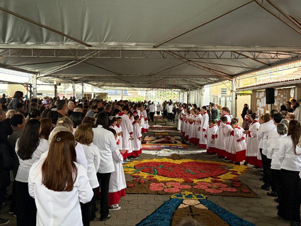 A celebração de Corpus Christi no bairro Passagem, em Tubarão, emocionou a comunidade nesta quinta-feira (19). Mesmo sob chuva, mais de mil pessoas participaram da missa e da tradicional procissão, reforçando a força da fé e da união entre os moradores da região. Para garantir a continuidade da tradição, os tapetes foram confeccionados sob uma estrutura coberta.