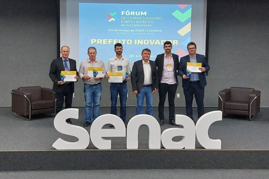 Quatro prefeitos da Amurel foram premiados pela implantação de projetos que tenham a tecnologia como base para melhorar a eficiência do atendimento à população. O reconhecimento foi concedido durante o evento Fórum de Cidades Digitais e Inteligentes, realizado nessa quinta-feira (23), em Criciúma. Gravatal, Laguna, São Martinho e Treze de Maio foram as cidades que tiveram destaque como prefeito inovador.