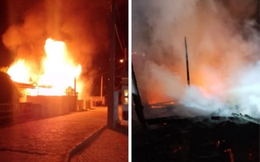 Um incêndio destruiu completamente uma residência na noite deste domingo (19) no bairro São João Margem Direita, em Tubarão. O proprietário da casa relatou que as chamas começaram com um curto-circuito em um aparelho conversor da televisão.