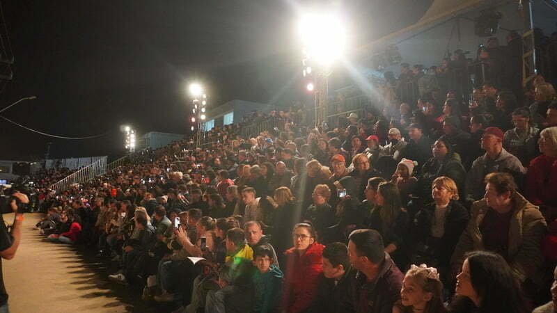 A primeira noite de apresentação lotou as arquibancadas. As tendas estruturadas em frente ao Mercado Público acolheram cerca de 1.800 espectadores que puderam prestigiar o evento com a aquisição do ingresso solidário, obtido em troca de doações de alimentos que foram distribuídas para as famílias assistidas pela Fundação Irmã Vera.