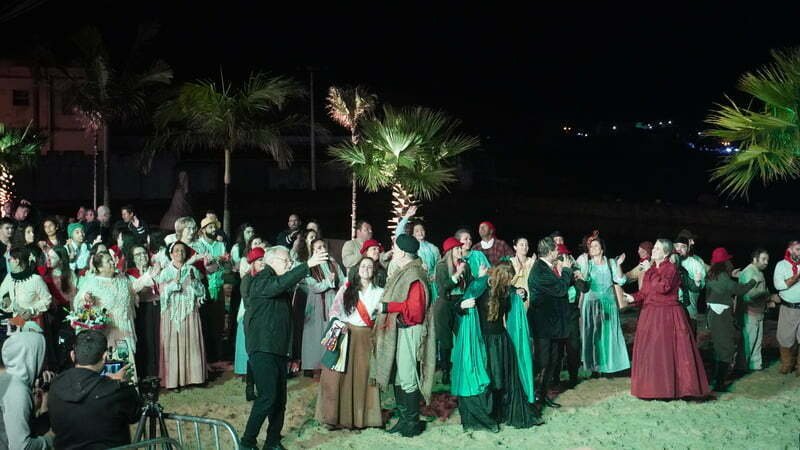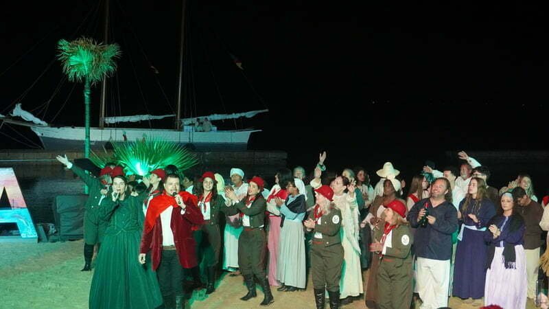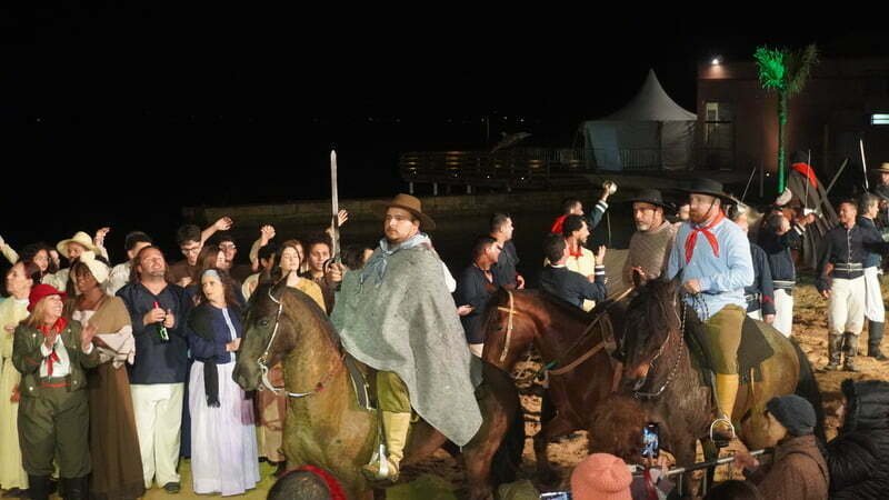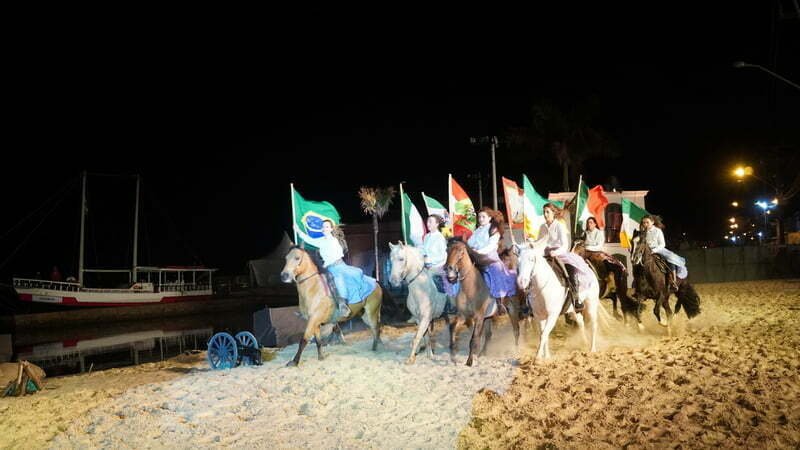 A frente de um elenco 300 atores e figurantes, os atores Lize Souza e Werner Schünemann deram vida Anita e Giuseppe Garibaldi. Foram momentos de muita emoção que nem mesmo as baixas temperaturas e a chuva impediram que o público vibrasse com cada tiro de canhão. Também não faltaram suspiros ao acompanhar o romance de Anita e Giuseppe.
