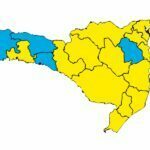 A Matriz de Risco Potencial Regionalizado divulgada neste sábado (29), apontou 15 regiões classificadas como risco potencial alto (cor amarelo) e duas no nível de risco moderado (cor azul). A região da Amurel permanece classificada como risco alto para covid-19.