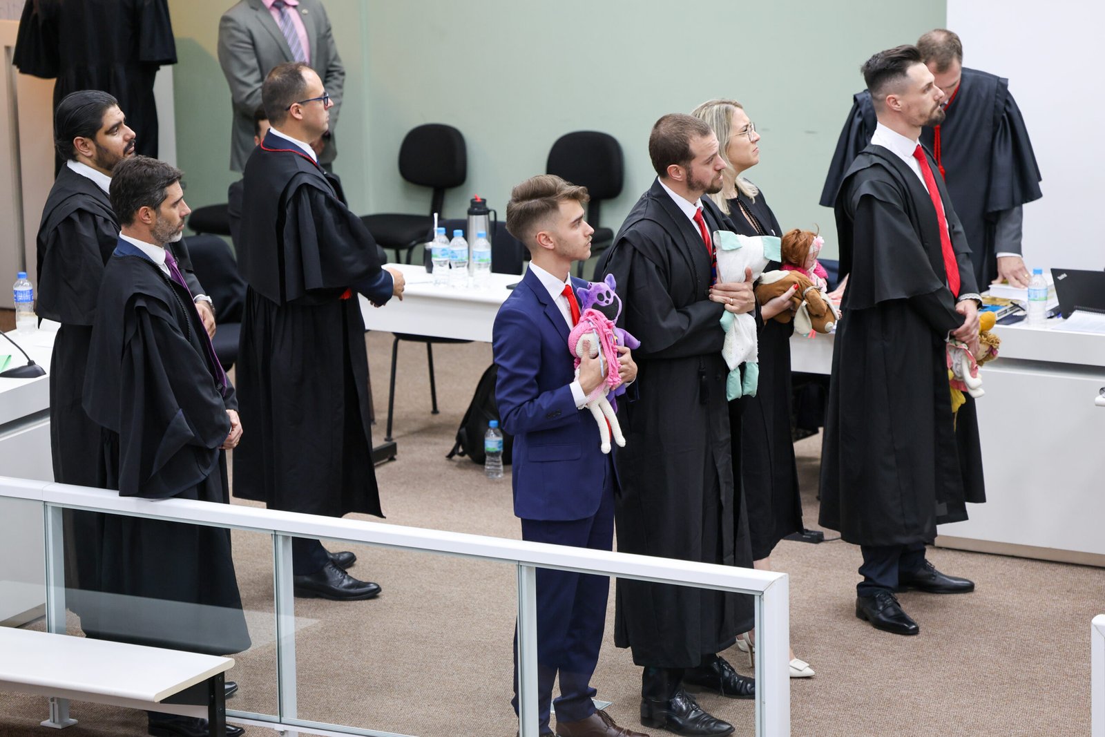 Em seguida, foram sorteados os sete jurados integrantes do Conselho de Sentença. Foram 11 horas até a leitura da sentença, nas quais os Promotores de Justiça Rodrigo Andrade Viviani e Guilherme Schmitt se revezaram para obter a condenação do réu a 220 anos de reclusão pelos crimes.