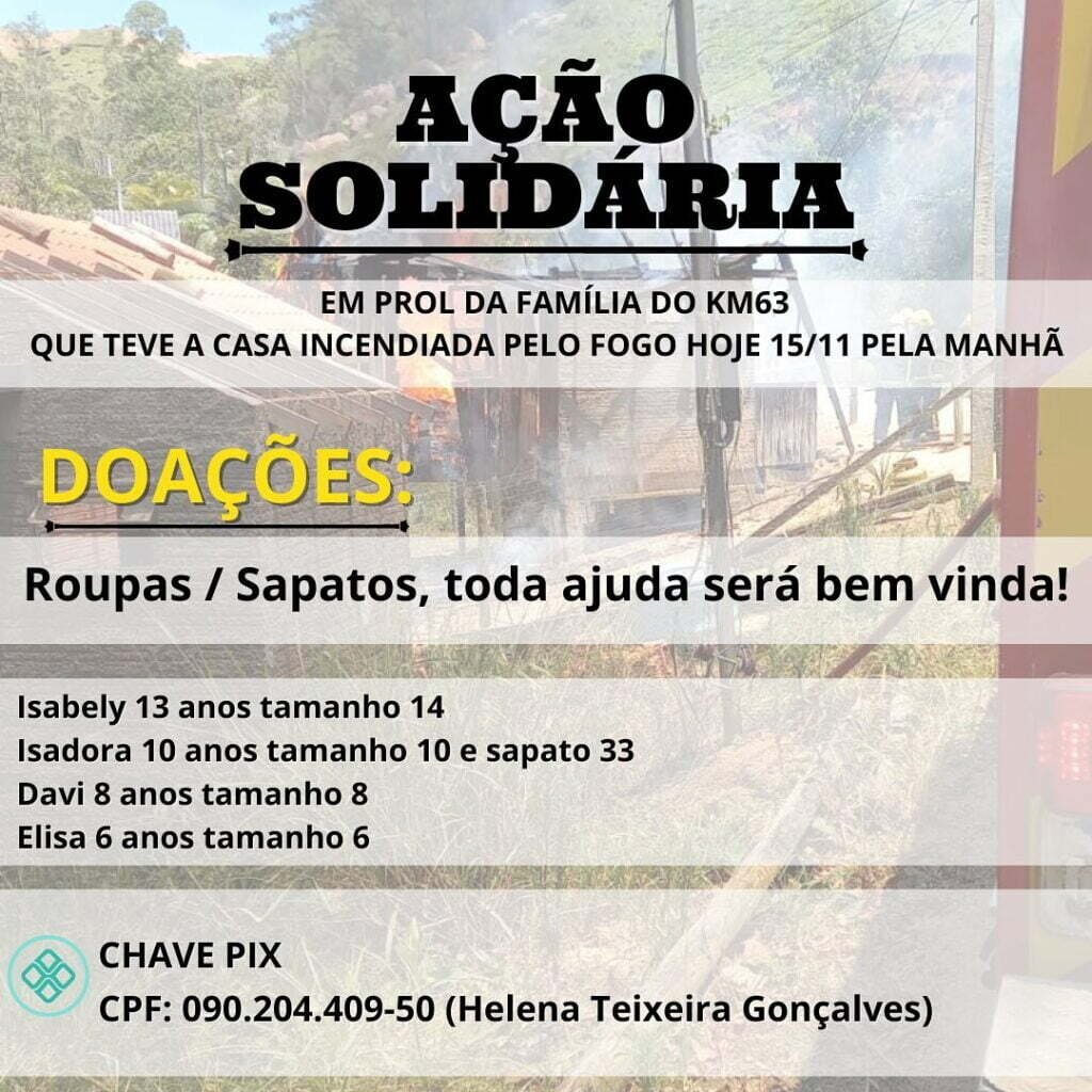 A família da moradora da residência lançou uma campanha para ajudar as vítimas do incêndio. Na residência moravam uma mulher e quatro crianças. Foi criado uma vaquinha online (neste link) onde as pessoas podem fazer doação em dinheiro. Além disso, quem quiser, pode contribuir com doações de roupas, especialmente para as crianças.