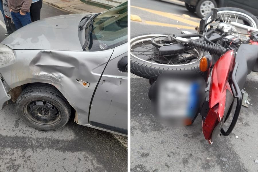 Uma colisão entre um carro e uma motocicleta deixou duas pessoas feridas em Jaguaruna, no começo da tarde deste sábado (12). O acidente de trânsito aconteceu por volta das 12h na avenida Duque de Caxias, no Centro de Jaguaruna.