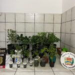 A partir de dados obtidos no sistema da polícia, o endereço da residência foi identificado e, ao chegar no local, os policiais encontraram 56 pés de maconha e diversos equipamentos usados para o cultivo da planta, como aparelhos de ar-condicionado, placas de LED, medidores de temperatura, plásticos filmes, balança e uma bomba d’água. Além disso, também foram apreendidos três celulares e uma moto.