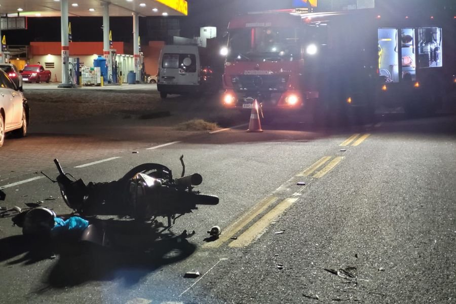 Um motociclista foi hospitalizado após uma colisão com um carro na BR-101, em Laguna, na noite deste sábado (22). O acidente aconteceu por volta das 20h45min, no bairro Cabeçudas. Segundo o Corpo de Bombeiros, o condutor da moto estava sobre a pista com fraturas nas pernas e braço direito, traumatismo cranioencefálico, e uma perda considerável de sangue, com suspeita de hemorragia interna. O condutor do veículo não teve ferimentos graves.