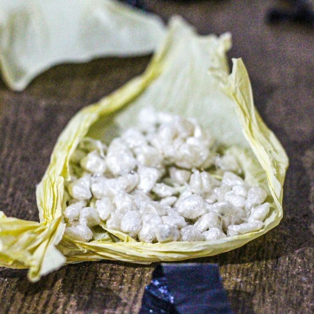 Ao se aproximar do local, os policias conseguiram ver, a distância, pela janela da residência, uma grande quantidade de drogas sobre a mesa sendo fracionada e embalada pelo trio.