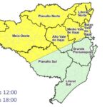 A condição para temporais e chuva volumosa no estado se mantém até este sábado (18), conforme alerta de atenção meteorológica da Defesa Civil de Santa Catarina. O risco é alto para ocorrências associadas a chuva volumosa, como alagamentos, enxurradas, deslizamentos e inundações graduais, sobretudo entre o Vale do Itajaí e o Sul catarinense. Além disso, permanece o risco alto para ocorrências associadas aos temporais com raios, vendavais e granizo, como destelhamentos, danos na rede elétrica, queda de galhos e de árvores.
